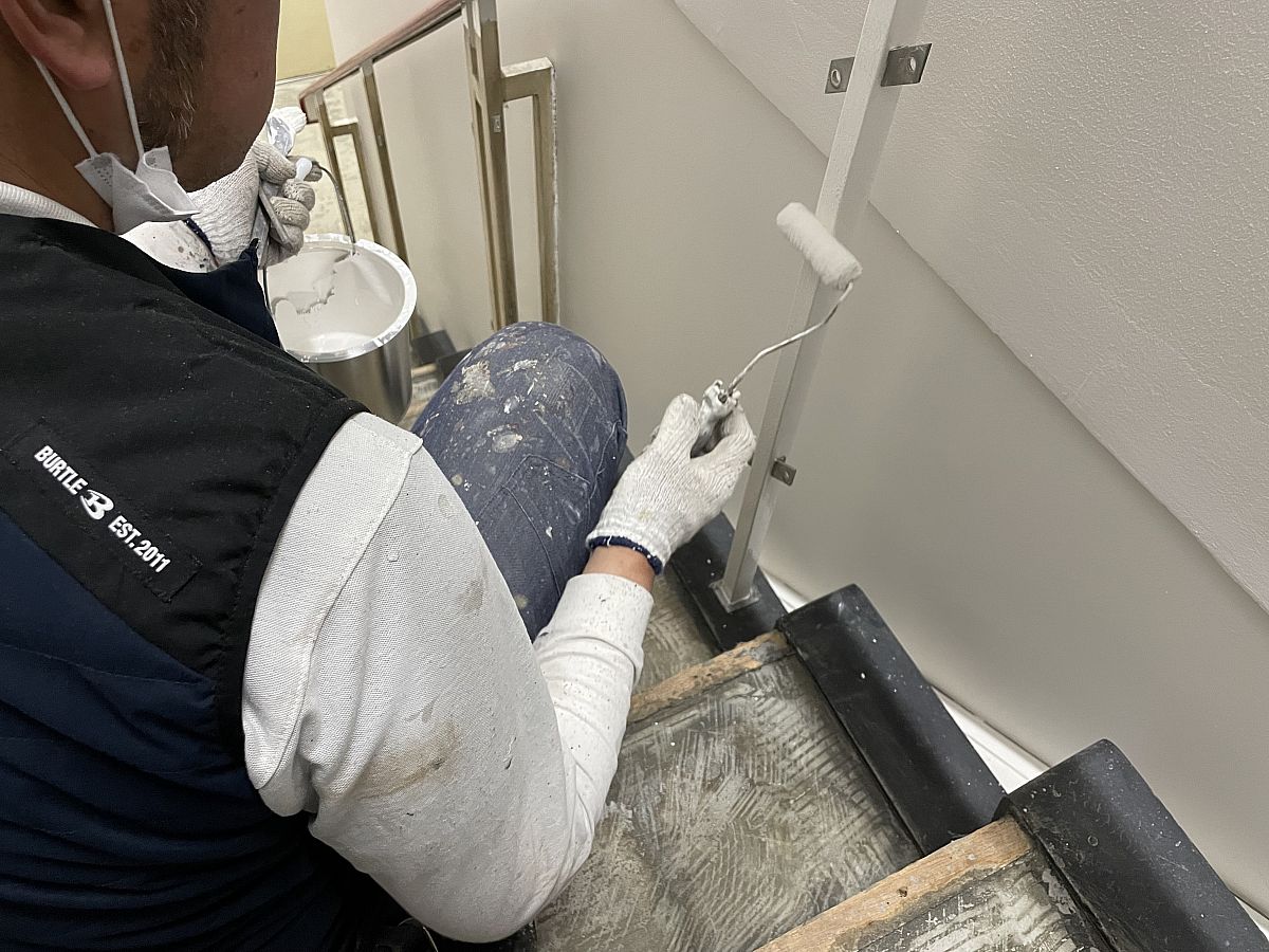 こんにちは!山田塗装店ピーちゃんです(/・ω・)/なんと、、当社外部だけじゃなく内部の塗装も行ってるピヨ!!!こちらの現場は階段の鉄骨部分の塗装になるピヨ!階段の手すりが白系統になって、明るい雰囲気になったピヨ♪他にも内部は壁などがありますが、塗料によっては消臭効果がある物もあるので要チャックピヨ!\(^o^)/