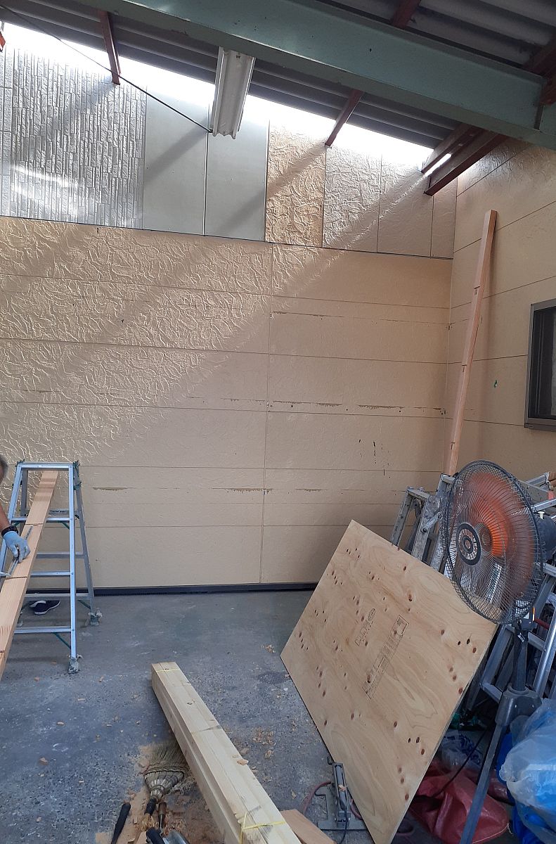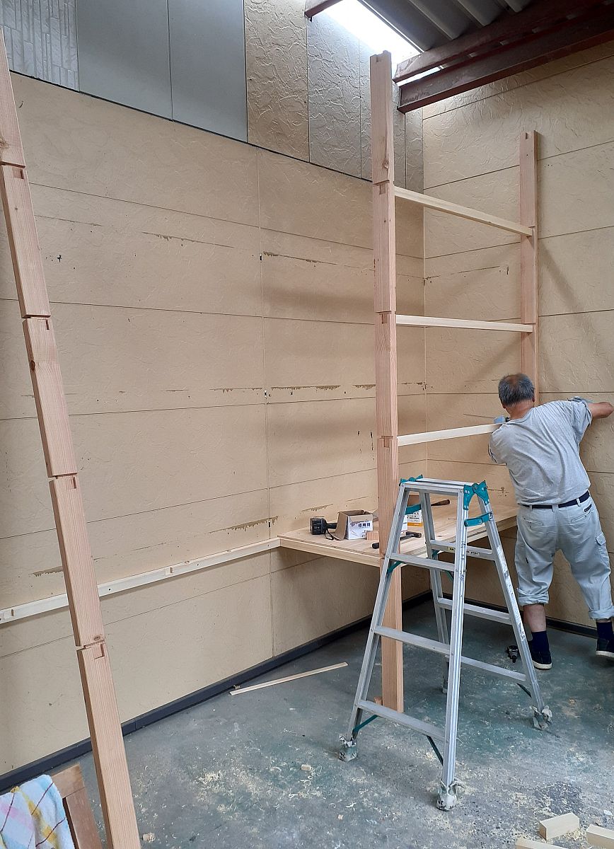 倉庫内の棚も改装中!みなさん、こんにちわ!
