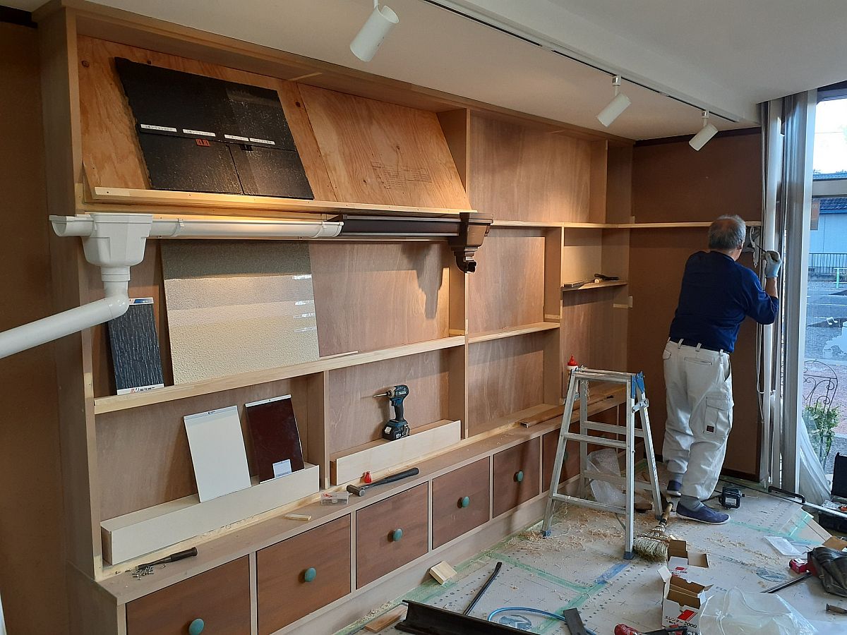 こんにちは寒いピヨ(*_*) ニュースで雪が…そんな季節ですもんね朝、布団から出られないです洗面所に、小さい電気ヒーターお目見えしました事務所内改装をお知らせしま~す誰でも見やすいように、配置等考えて展示棚を改装♪と、大工さんにお願いしました展示の途中ではありますが、お気軽に足を運んで屋根や壁等の塗料を見ていってくださーいこんな塗料もあるんだって、いいお勉強になるかも!?