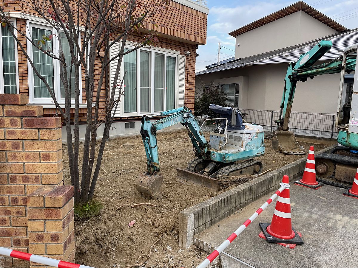 おはようございます!11月も残り1週間!もう12月なんて1年が早すぎます(^^;)年末に向けてお仕事もプライベートもやり残しが無いように締めくくらなくてはですね、、!さて、本日はお庭の改修工事の現場の紹介(^^)/先日お庭を人工芝にする工事が始まりました!!!現在ある芝を取り除き整地し、人工芝にしてフェンスも取付けます!