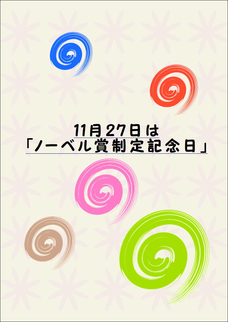 11/27日は「ノーベル賞制定記念日」だそうです