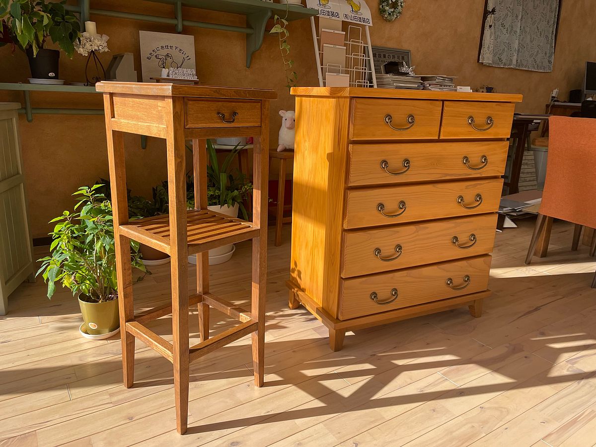 当店オリジナル家具のチェストと電話ラッグです!本日は先日イベントに来てくださったお客様が、ご検討されていた