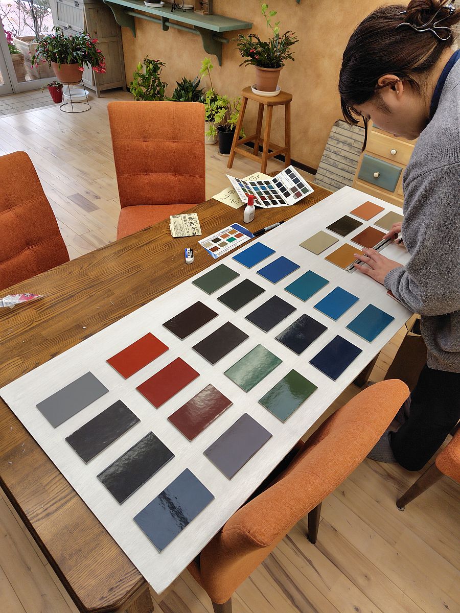 みなさん、こんにちわ!雪がまた降ってきましたね(*_*)インフルエンザも流行っているのであったかくして本日も頑張りましょう!!さて、年末から始動していた、展示ルームの改装が着々と出来上がってきました~!見本板を切り貼りして、屋根カラー一覧表を作成中の営業さん(^^)vもう少しで完成予定なので乞うご期待ピヨ♪
