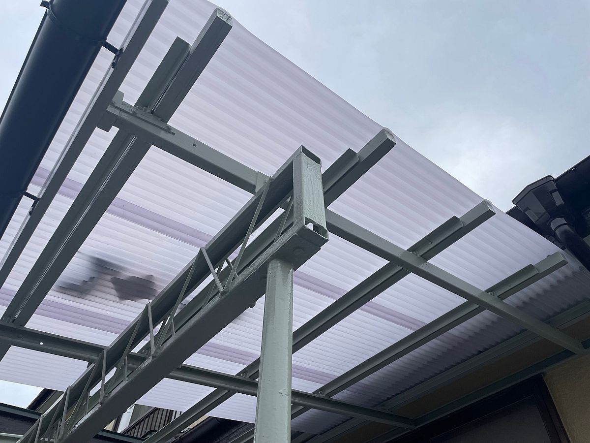 こちらの現場は駐車場屋根・テラス屋根がポリカ波板でして、