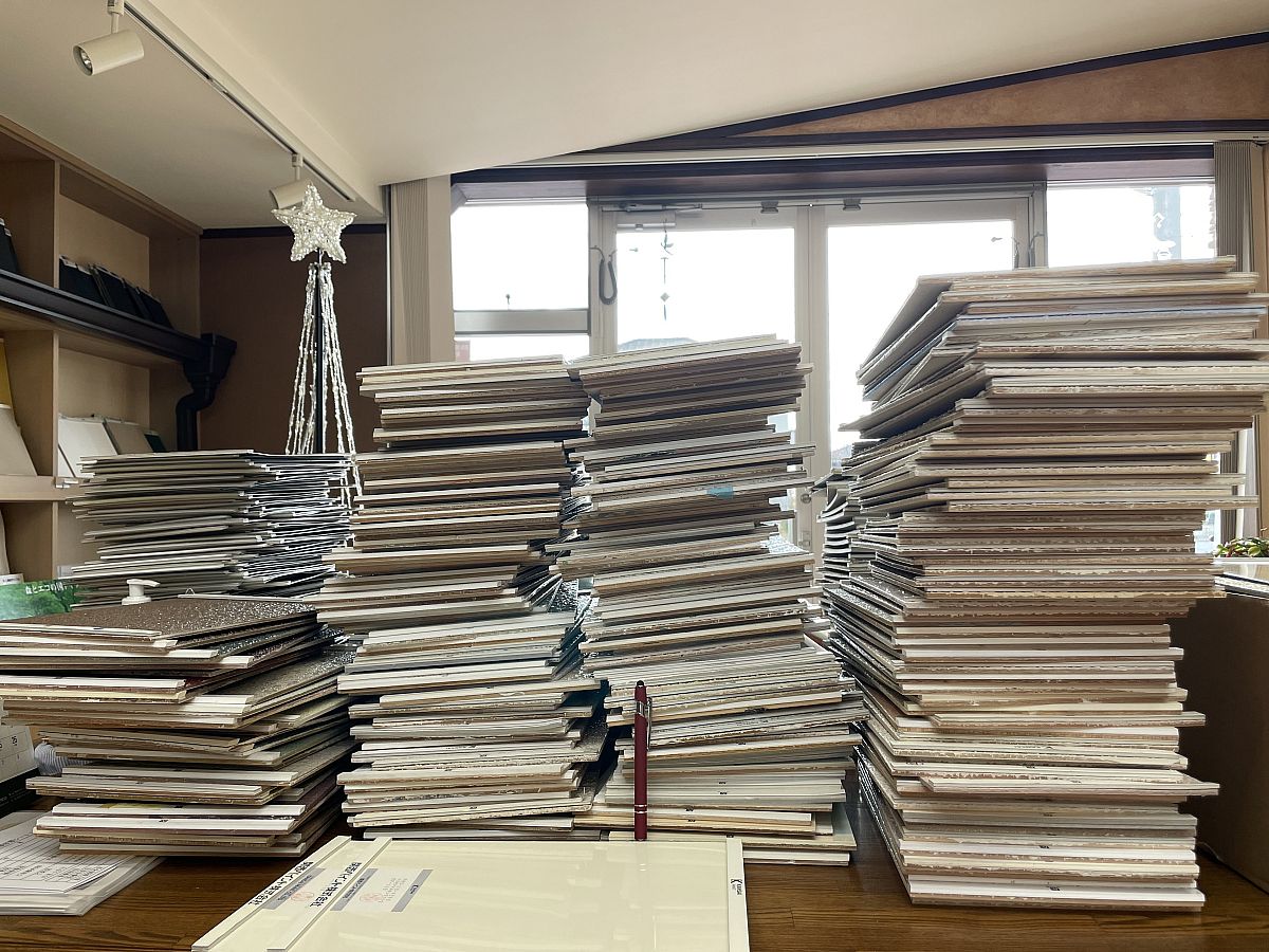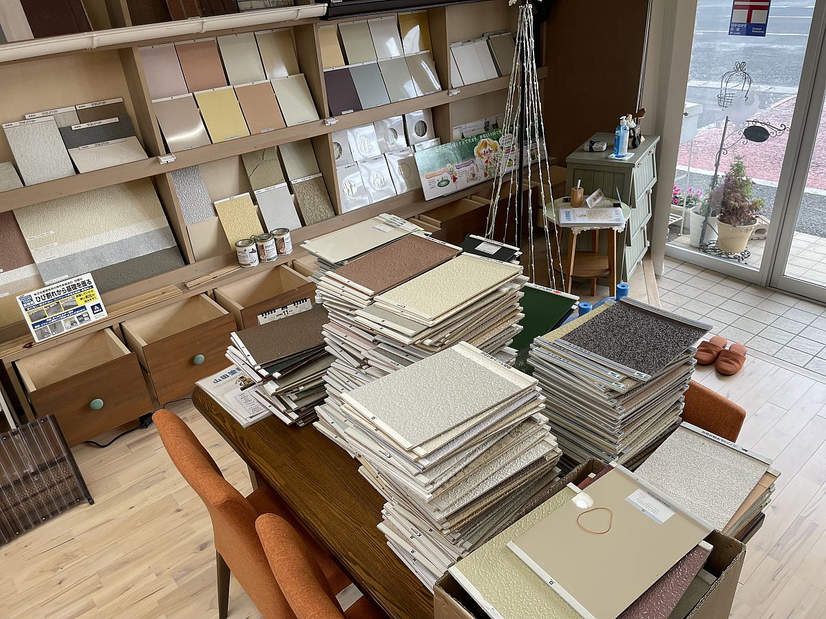 皆さん、こんにちは!山田塗装店のピーちゃんです!!年末に向け、塗り板の整理を始めました♪お客様のお好みに合うお色探しに夢中で、気付いたらこ~んなにたくさんの塗り板が集められていました(;゚Д゚)ここぞとばかりに掘り出してきた塗り板を、お客様がいらっしゃる前に急いでお片付け!皆さんがお好みの素敵なお色に出会えますように精一杯お手伝いいたしますので、いつでもご来店・ご連絡おまちしております(*^^*)♡
