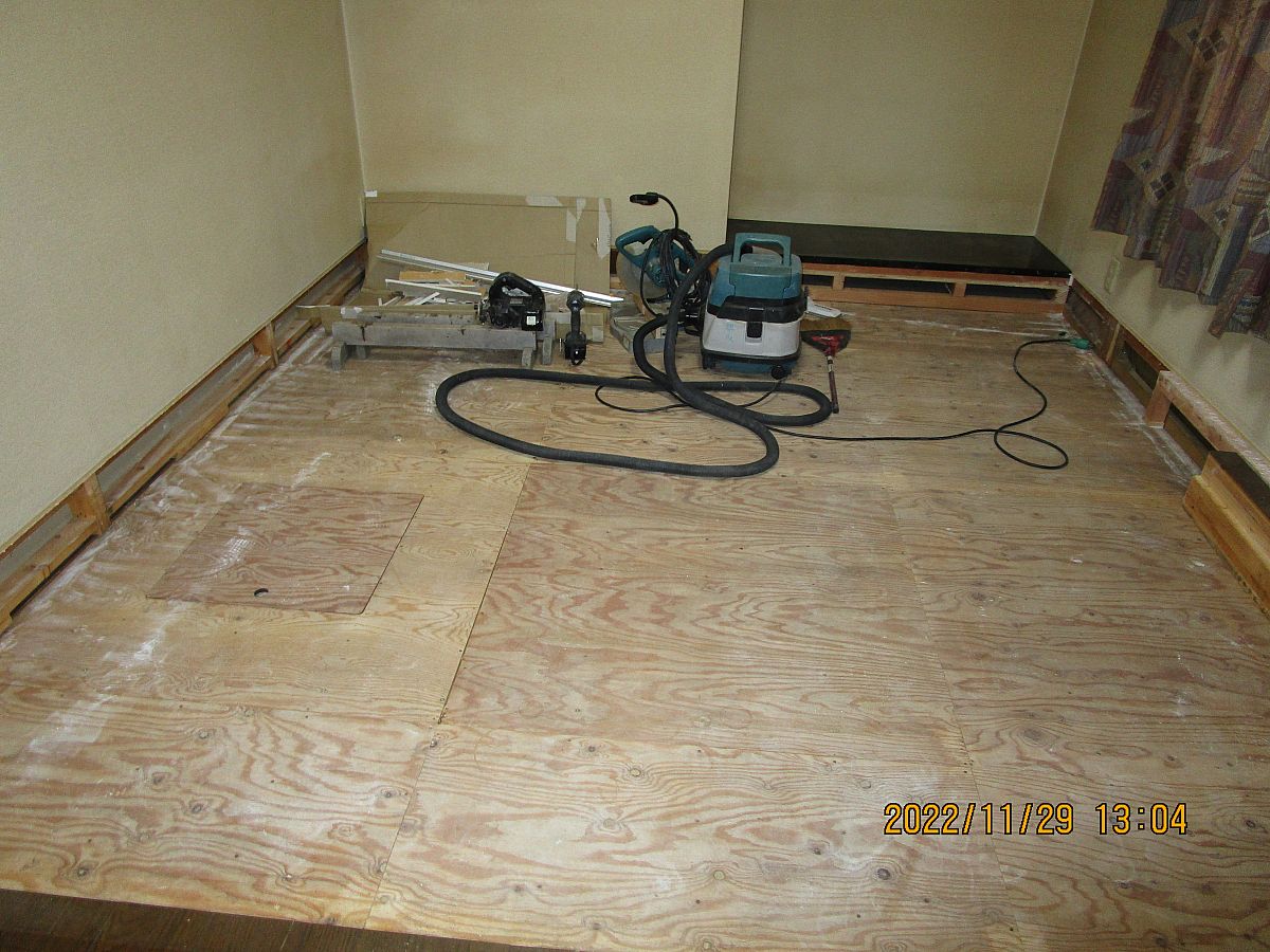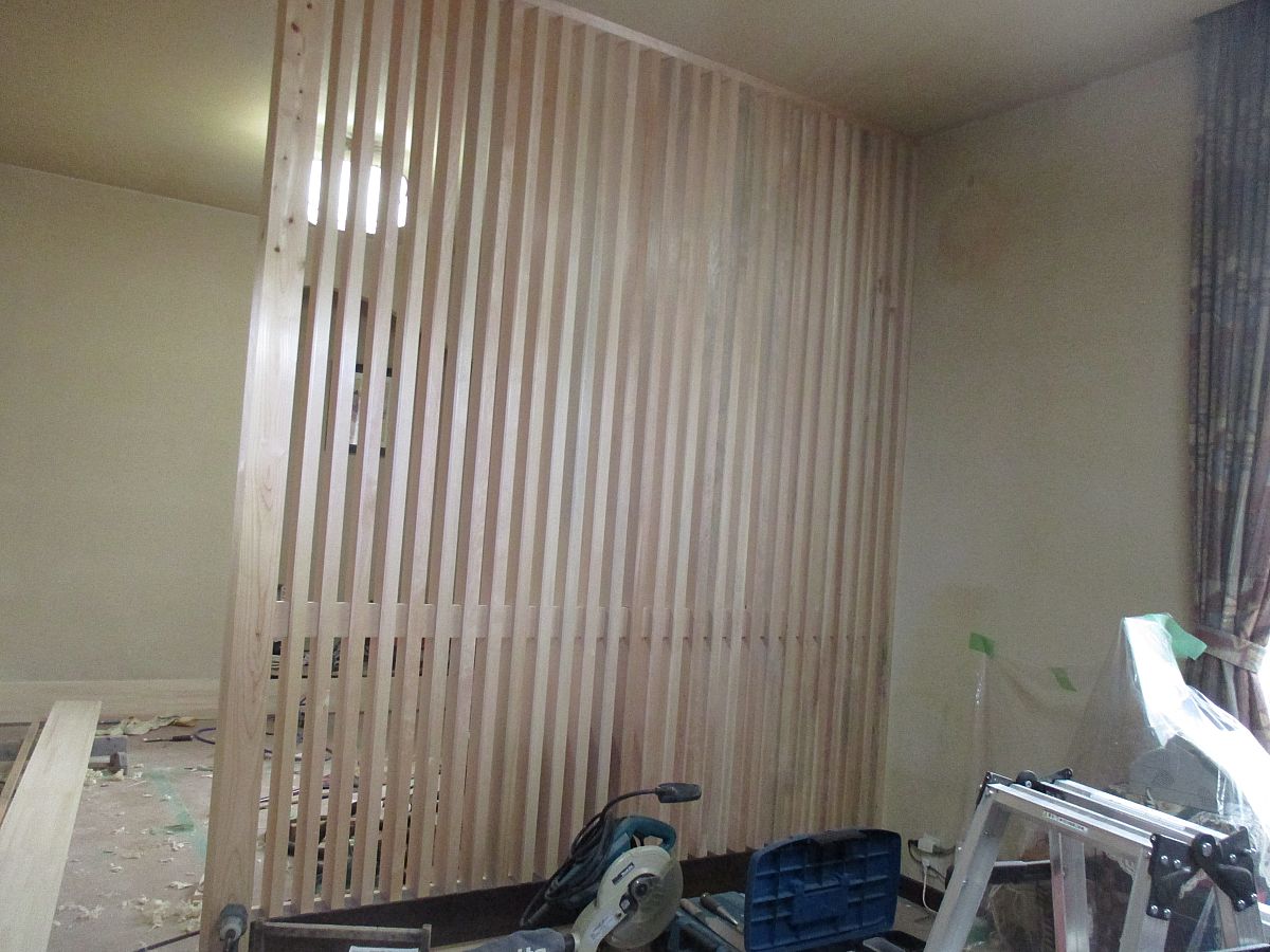 畳があった場所にフローリングを貼り、格子作成へ移ります。