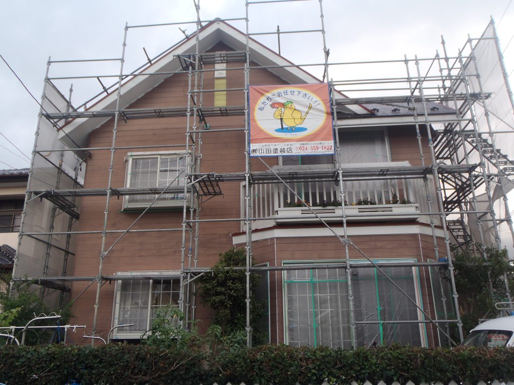 洗浄後、下地シーラー処理、2液シリコン塗料の3回塗りで仕上げました。