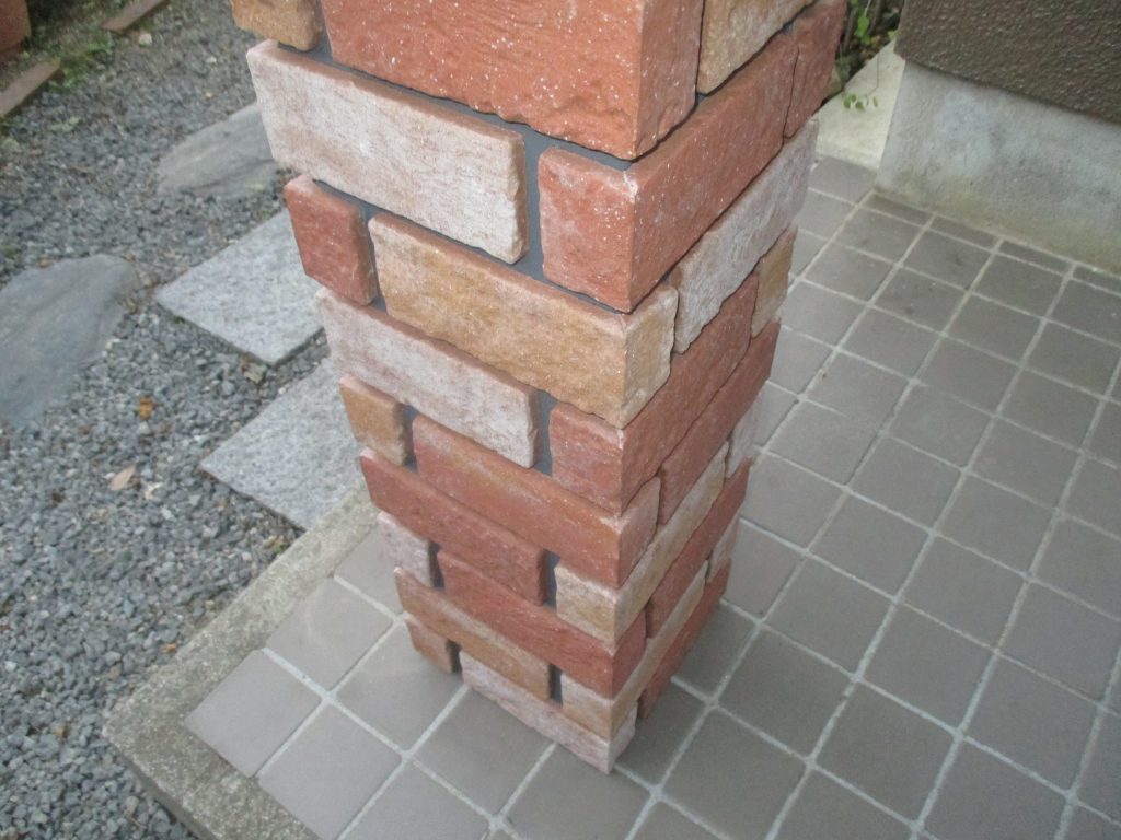 レンガタイルを等間隔に貼っていき完成です。