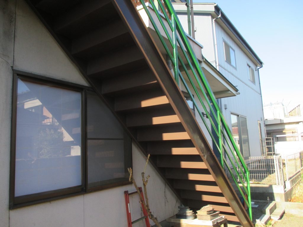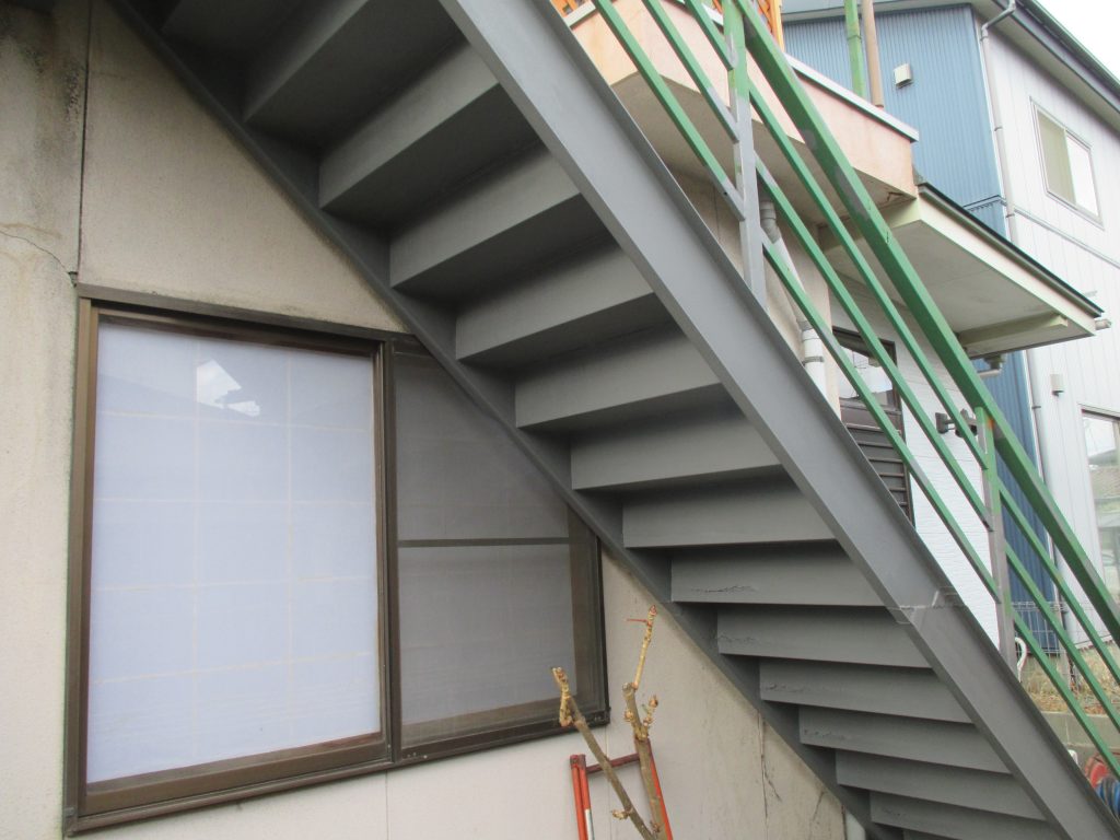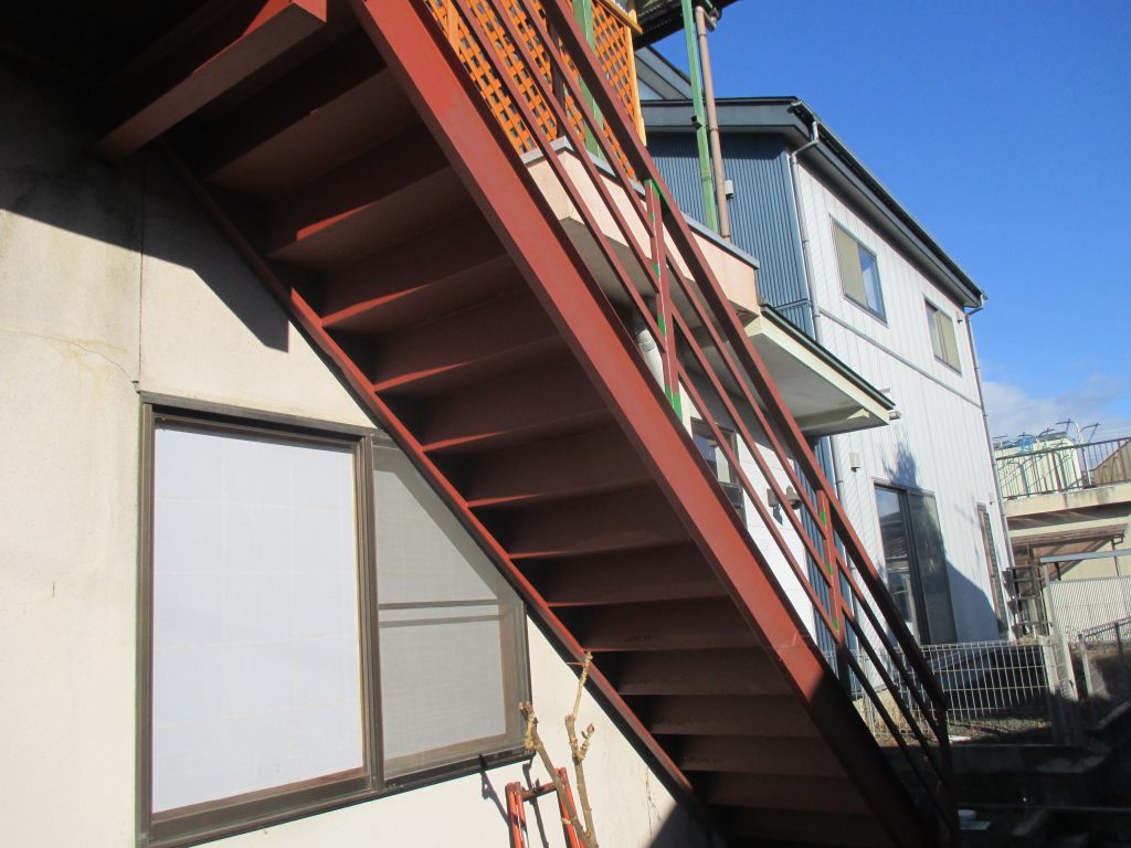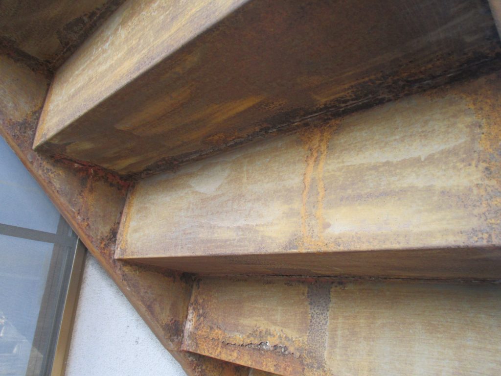 外部鉄筋階段 塗装依頼さびが多く発生して、見た目が悪い状態です。