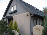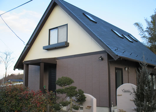施行後屋根勾配が急で屋根足場を掛けての作業となり、天窓の雨もれ補修、アンテナとめ金具の交換等をしての塗装となりました。