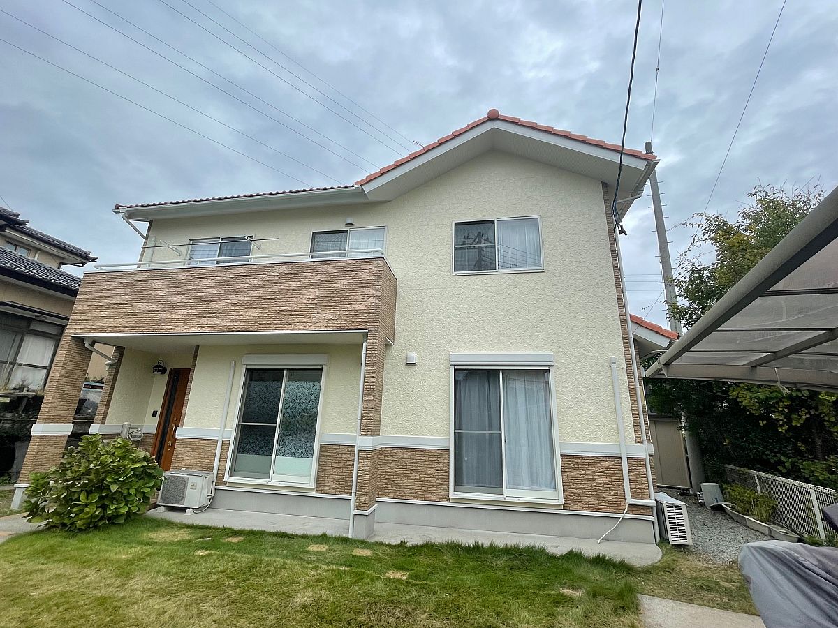外部塗り替え工事宮城県多賀城市にて施工いたしました!アクセントの外壁は、柄を活かしてクリア塗装にしました屋根のカラーはオレンジ系統にし、幕板や雨樋は白で全体的に明るい洋風なお家へ♪屋根のカラーは特注で、塀と物置も塗装しました!施主様、ならびにご協力してくださった皆様、ありがとうございました!!