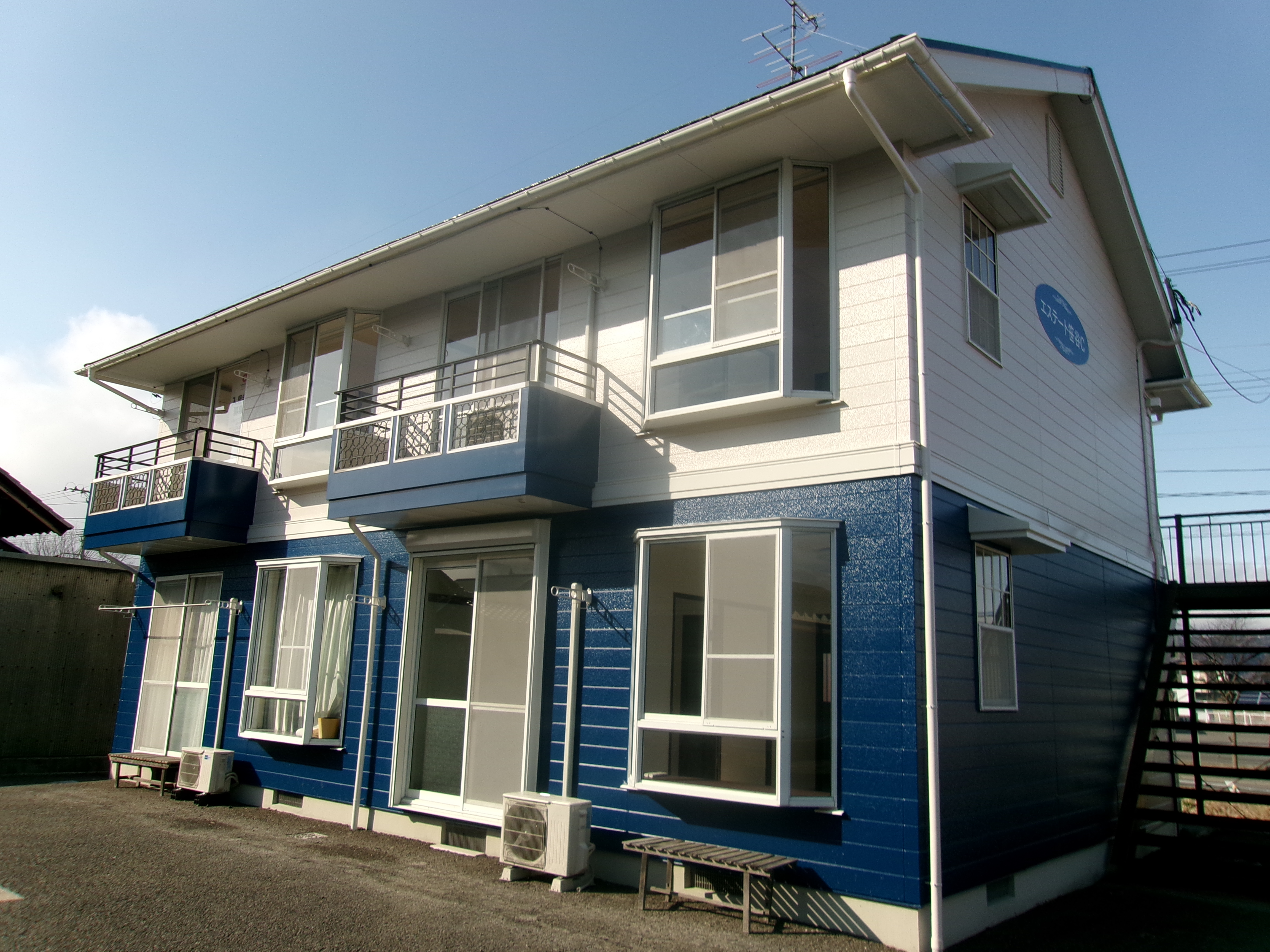元々はベージュ系統のアパートでしたがこの機会にご希望によりガラッとイメージチェンジしました!💙💦そして1カラーから上下の2カラーに!2階が明るく、1階部分を濃くすることで重たいカラーが下に来て重心が綺麗に見えます!ブルーのカラーも全艶での塗装なので艶が綺麗です✨️✨