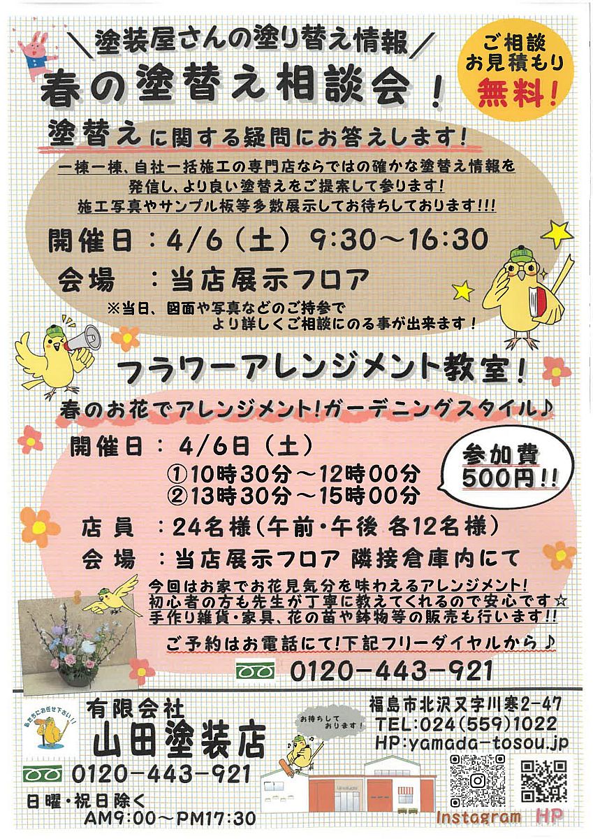また、塗替え相談会も開催しておりますので、この機会にお家の不安な点がありましたらご相談ください!