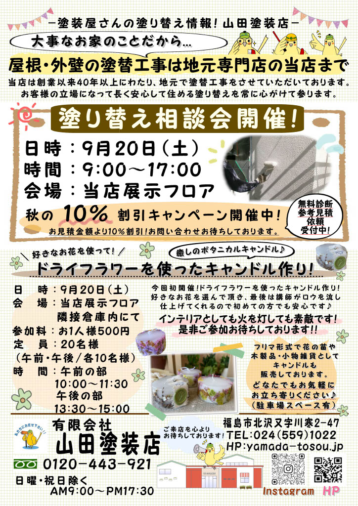 - 2025年09月19日(金)9月20日!福島市相談会 & イベント開催!「ボタニカルキャンドル」ꔛꕤ*。