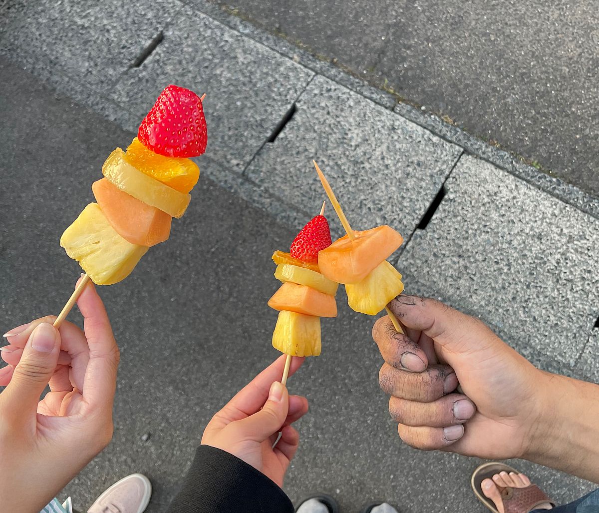 今回のお花見は、映えなフルーツ串に、社長大好きなワインも準備されていました。