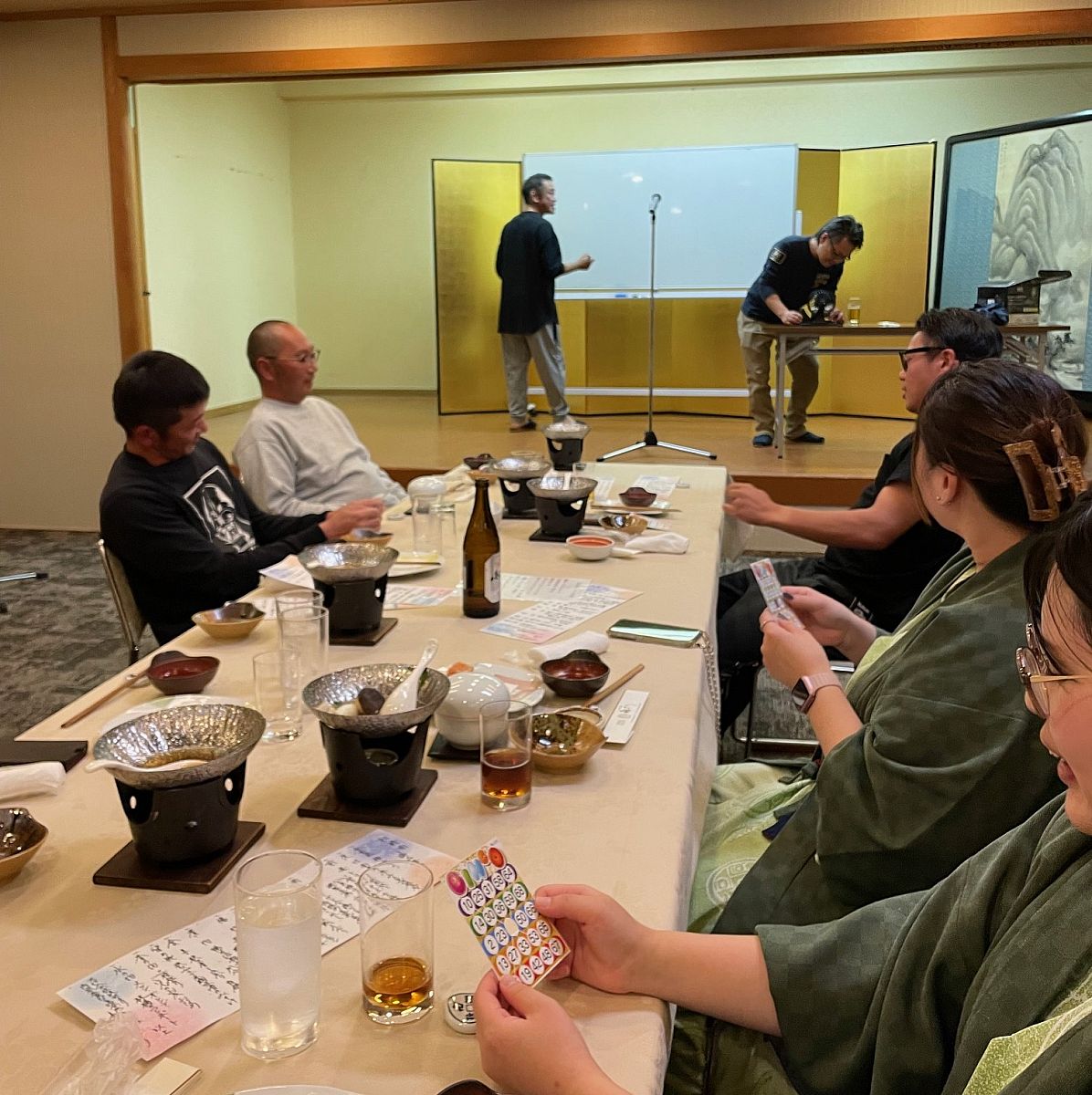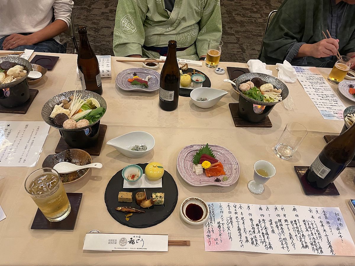 夕食では料理を楽しみながらみんなお酒をたしなみ、